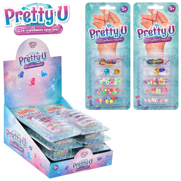 Бісер M 4990 UA намистини, підвіски, нитки, мікс видів, 20 шт. в диспл., лист, 27-21-13 см.