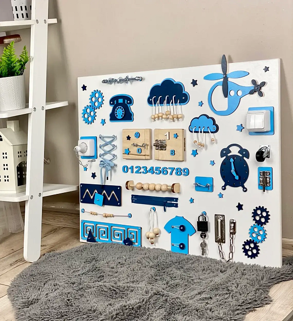 Бізіборд 60х80 см синій з вертольотом