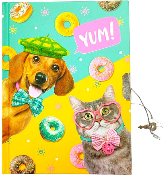 Блокнот дитячий на замочку 178 x 133 mm, 70g, 56 л, Пес, кіт і пончики