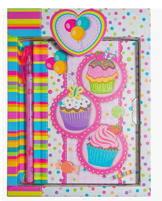 Опис Блокнот дитячий на замочку в подар.коробочці з ручкою 150x110mm, 70g, 56 л, тістечка