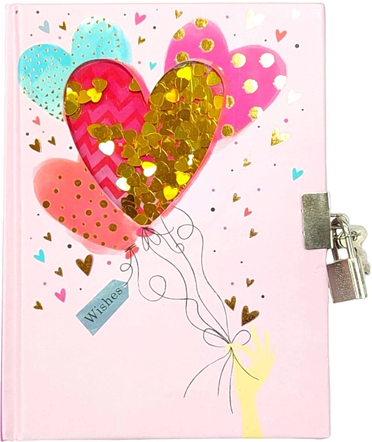 Опис Блокнот дитячий на замочку з віконцем 178x130mm, 70g, 80 л, Сердечка