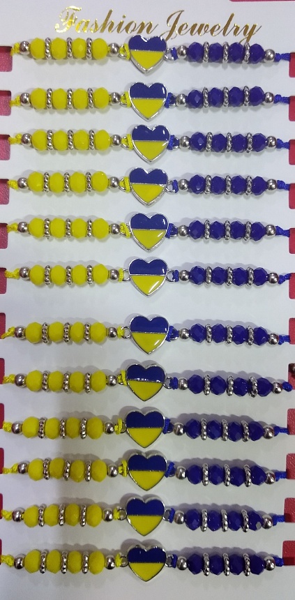 Браслет патріотичний, жовто-блакитне серце з бусинками * 100 * 12