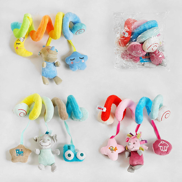 - кожна іграшка на підвісці оснащена пискавкою, елементами, що шарудять і гримлять;