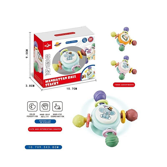Опис Брязкальце-спінер 8084 E (400/2) гумові прорізувачі, присоска, в коробці