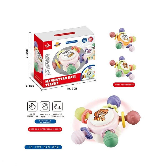 Опис Брязкальце-спінер 8085 e (400/2) гумові прорізувачі, присоска, в коробці