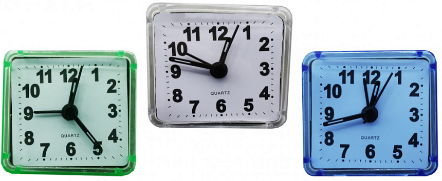 Будильник №ZW-6621 квадр. мал. 3кол корп. внутр. 1біл кол (2,6 * 5,5 * 5,8) 1R6 в кор. (200)