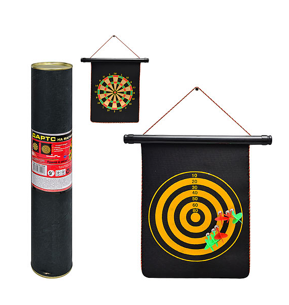 Дартс MS 0098 - 9 ", магнітний, 6 дротиків, розмір поля 34,5-25см, в тубусі
