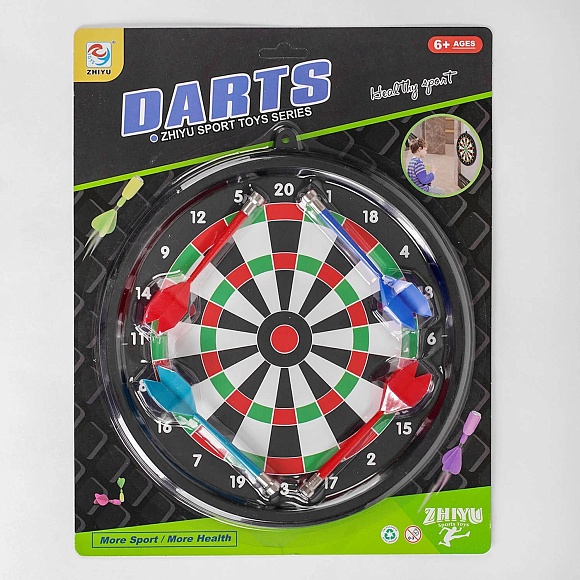 Дартс - це цікава спортивна гра з метання дротиків у круглу кольорову мішень, розділену на сектори з цифрами. Модель ZY 3009 є більш безпечною для дітей версією - з магнітною мішенню і дротиками з плоским наконечником. Завдання гравця - набрати найбільшу кількість очок, поцілюючи у середину мішені. Вона відмінно тренує влучність і твердість руки, дитина буде з цікавістю тренуватися, щоб навчитися потрапляти точно в ціль.