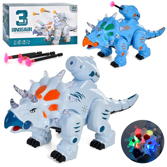 Динозавр 5688-28 стріляє кулями-присосками, ходить, 2 кольори, муз., бат., кор., 33,5-19-14см.
