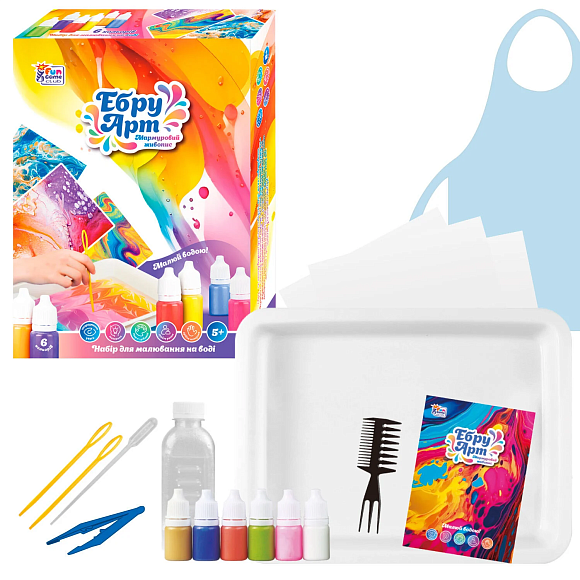 Опис Ебру арт 62742 (12) "4FUN Game Club", 6 пігментів, концентрат 50 мл, акварельний папір, інструменти, у коробці