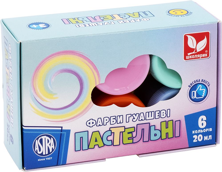 Опис Фарби гуашеві пастельні кольори 6 кольорів по 20 мл