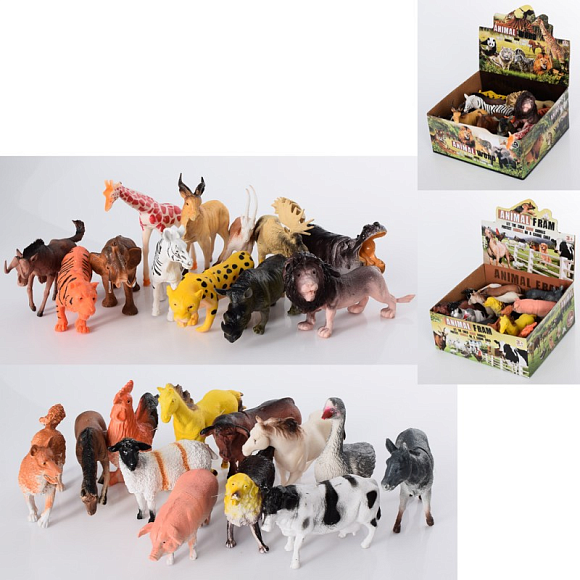 Фігурка LD-608-609 тварина, 2 види (дикі/домашні), 12 шт. (12 видів) в диспл., 21,5-10-20 см.