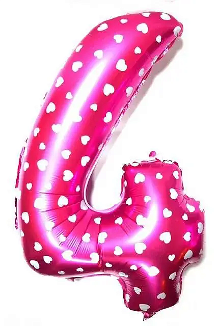 Повітряні кулі-цифри "4" (чотири) підходять для надування повітрям для дня народження та інших свят. У кулі є вбудований клапан, який полегшує надув.Колір: рожевий у серцях.