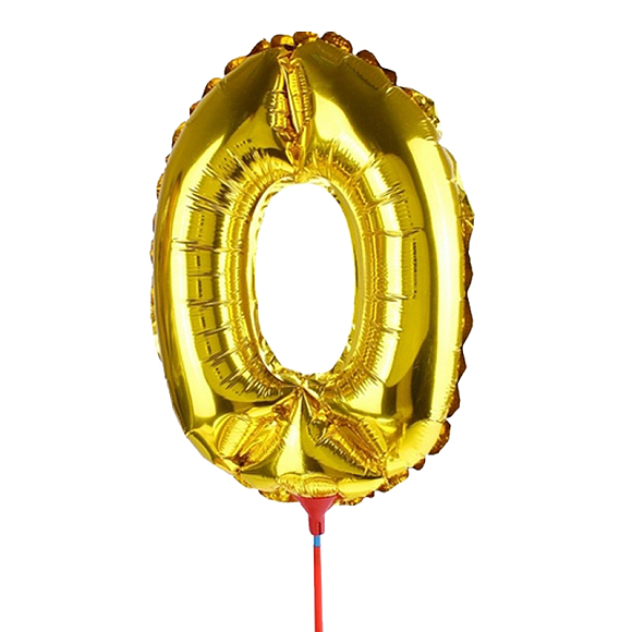 Фольгована кулька цифра "0" золото на паличці 35см Китай