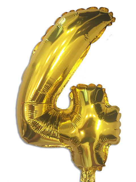 Фольгована кулька у вигляді цифри "4" з клапаномКолір: золото