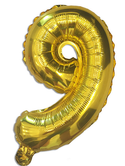Фольгована кулька у вигляді цифри "9" з клапаномКолір: золото