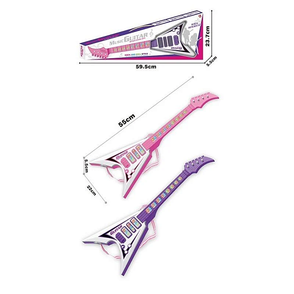 Відчуй себе справжньою рок-зіркою та зіграй свої перші музичні шедеври разом з цією яскравою електрогітарою, яка просто створена для програвання вибухових нот та пісень, повз які не може пройти жодна людина. Ця іграшкова версія гітари порадує її власника 7 різними мелодіями, які активуються за допомогою відповідних кнопок, а 4 пластикових струни допоможуть відтворити легкі мелодії майбутніх популярних пісень. Іграшку можна зручно повісити через плече, адже для цього є спеціальна лямка. Тому одягай скоріше через плече інструмент, який просто створений для мистецтва та програвай свої перші хіти для вірних прихильників.Особливості: