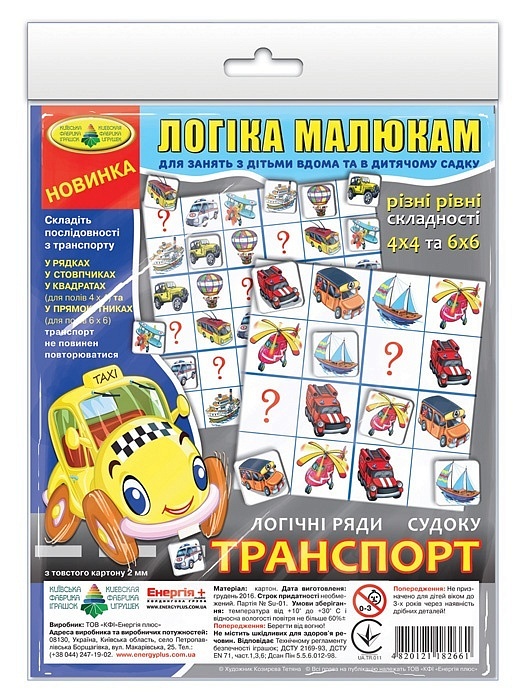 Гра "Логіка малюкам .Логічні ряди. Транспорт. Судоку"пак