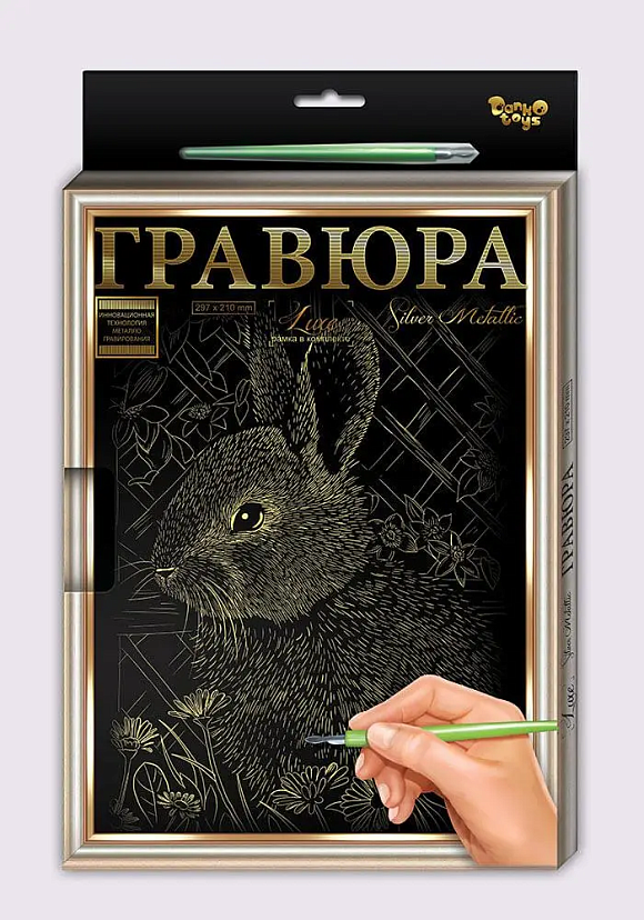У наборах "Гравюра" застосовується інноваційна технологія, завдяки якій, будь-яка дитина легко освоїть техніку метало-гравірування, доступну раніше лише кваліфікованим майстрам. Робота з гравюрою розвиває художній смак, творчі здібності, прищеплює працьовитість і почуття прекрасного.Після закінчення гравірування видаліть з картини залишки фарби - акуратно протріть зображення чистою сухою серветкою. Готову гравюру можна помістити в дерев'яну рамку, яка йде в комплекті.