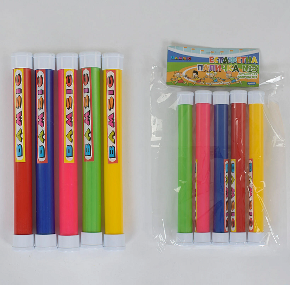 Опис Іграшка дитяча "Естафетна паличка №3 товста d. 2,7 см, l. 28см (в наборі 5 шт ) арт 0358, Бамсик