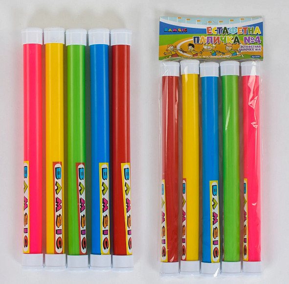 Призначена для проведення різних естафет та змагань. Сприяють розвитку спритності, координації рухів. Також під час змагання розвиває командний дух. За допомогою естафетних паличок уроки фізкультури стають набагато цікавіше і веселіше.Естафетна паличка №4 – естафетна паличка діаметр – 2,7 см, довжина – 35 см. Призначена для тренувань та проведення змагань.