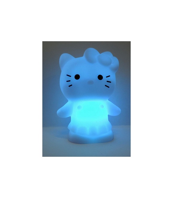 Іграшка святкова прикраса зроблена у вигляді білої матової іграшки мультперсонажу Кітті (Hello Kitty). Led Hello Kitty оснащений діодом, який світить різними кольорами. Led світильник Кітті працює від трьох таблеткових батарейок. Висота Led Кітті становить 8 см, а ширина 6