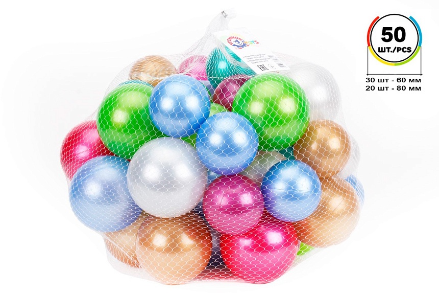 У наборі кульки у кількості 50 шт: 30шт розміром 60мм + 20 шт розміром 80 мм.