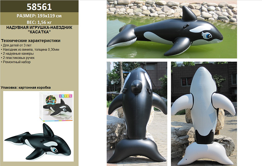 Опис Іграшка надувн. "Косатка" 58561 (6 шт) вініл, з ручками (3+ років), рем комплект, у кор. 193 * 119см