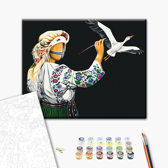 У набір входить:бавовняне полотно на дерев'яному підрамнику з нанесеною пронумерованій схемою майбутньої картини