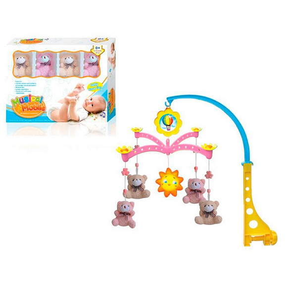 Опис Карусель на кроватку XQT712 заводна, підвіски 5 шт. (4 шт.-м'які, ведмедик), муз., кор., 32,5-25-7см
