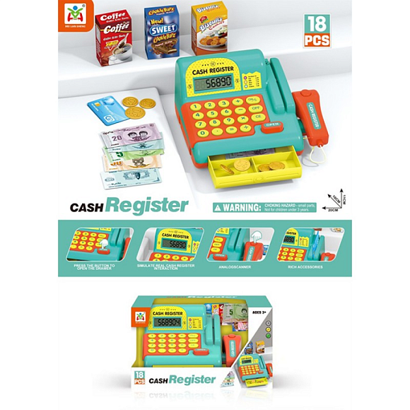 Опис Касовий апарат ls820a73-8 калькулятор,сканер,продукти,гроші,18пр.,муз.,світло,бат.,кор.,23-18,5-18см