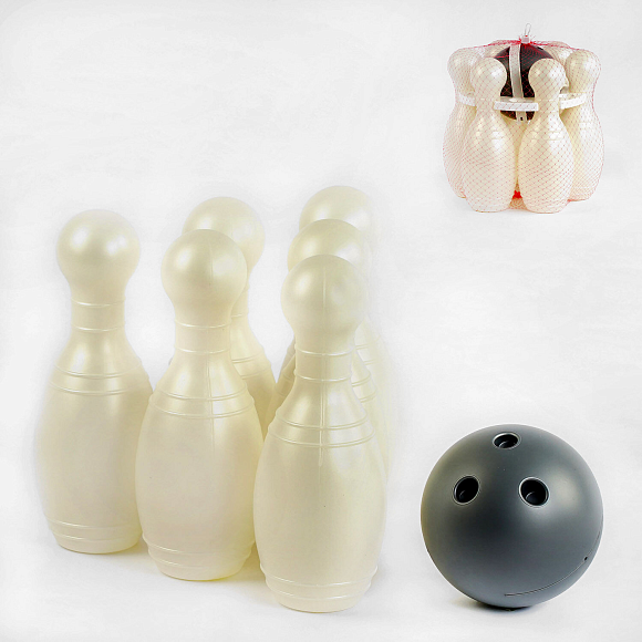 Гра в боулінг розвиває координацію рухів, цілеспрямованість і волю до перемоги. До того ж це дуже веселу розвагу, яке допоможе дитині полюбити спорт і з задоволенням їм займатися. Набір виготовлений з пластику.Комплектація: кеглі-6, куля-1.