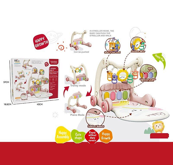 Дбаєте про правильний та якісний розвиток свого малюка? Тоді ці ходунки 3в1 створені саме для вас! Вони об’єднують у собі класичний режим ходунків, килимок та музичну панель, що розважає та стимулює розвиток малюка.Велика кількість підвісних брязкалець приваблять малюка і пробудять у ньому природний інтерес до вивчення навколишнього світу, а м'який килимок забезпечить тепло та комфорт.