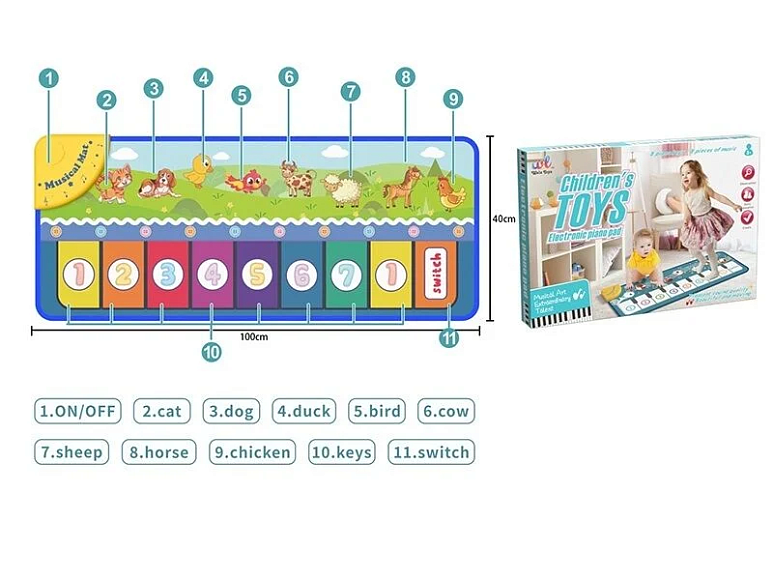 Музичний килимок відкриє дитині дивовижний світ звуків! Він підготував звуки тварин, різні мелодії та, звісно, саме піаніно, яке дозволить дитині вивчати ноти та складати власну мелодію. Музичний килимок допоможе створити у дитячій кімнаті особливу атмосферу та розвинути відчуття прекрасного! Особливості: