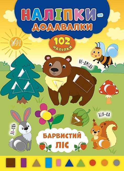 Книжка «Барвистий ліс» — унікальна можливість залучити дитину до пізнавальної та корисної гри, адже що може бути цікавіше за роботу з наліпками. Видання познайомить малюків з тваринами та допоможе удосконалити навички читання, адже всі підписи до малюнків поділено на склади. Також книжка містить великі яскраві ілюстрації та безліч геометричних наліпок, які потрібно добирати за формою та кольором. Перетворіть спільне дозвілля на корисно проведений час разом!