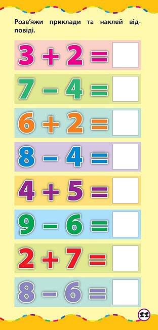 Із цією книгою ваша дитина легко та швидко навчиться рахувати в межах 10, порівнювати числа, а також розв’язувати прості приклади на додавання та віднімання за допомогою наліпок.Видання призначене для спільної роботи дорослих з дітьми дошкільного віку.