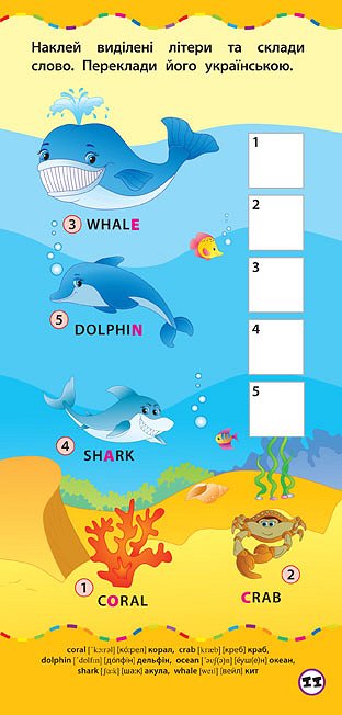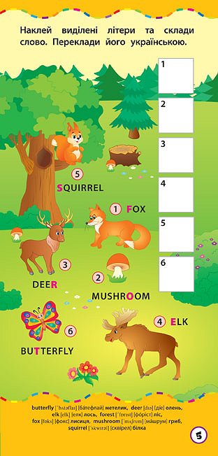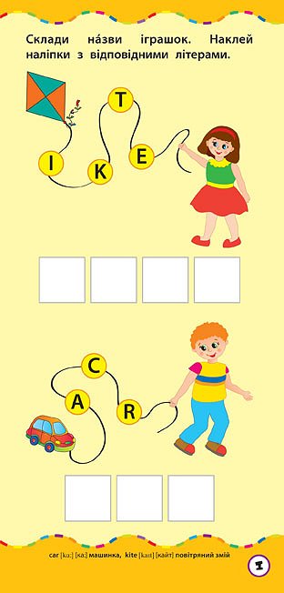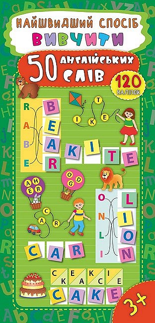 Із цією книгою ваша дитина легко та швидко запам’ятає базові англійські слова, навчиться складати їх з наліпок, а також потренується читати й перекладати.Видання призначене для спільної роботи дорослих з дітьми дошкільного віку.