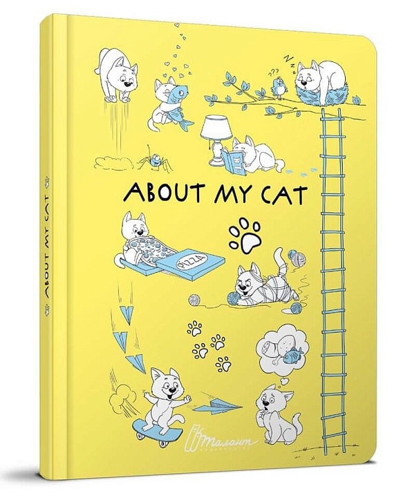 Красивий альбом About my cat, ілюстрований смішними малюнками, збереже найкращі фотографії домашнього улюбленця та історії про його милі витівки.Виданий у гарній твердій обкладинці, альбом стане чудовим подарунком усім власникам котиків.