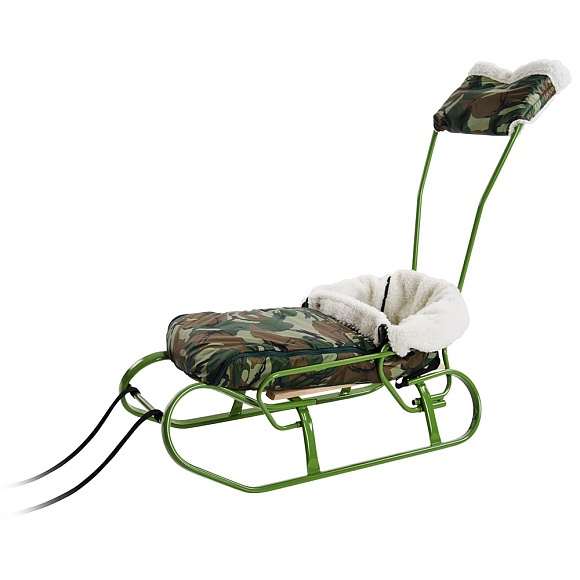 Опис Комплект "Хлопчик" (санки "Експрес хакі" + ручка + спинка + Чохол "Камуфляж" / хутро)