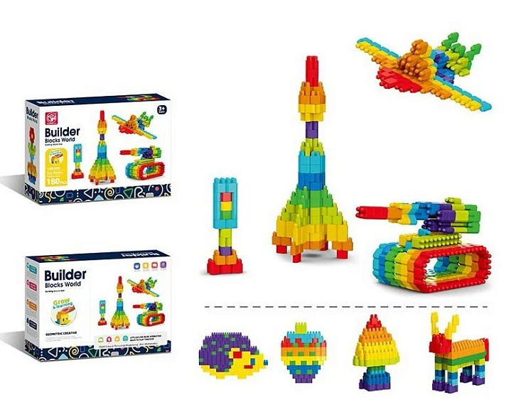 Розвиваємо фантазію та логічне мислення разом с цікавим конструктором! Іграшковий набір включає 180 елементів з пазовим типом кріплення. Кольорові елементи допоможуть побудувати цікаві конструкції та навіть артоб’єкти! Можна гратися не тільки з формою, а й кольором, викладаючи елементи у певній послідовності. До комплекту також входить вкладиш з прикладами фігур різної складності. Особливості: