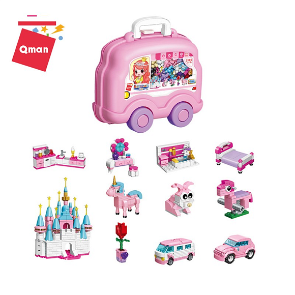 Конструктор Qman 2905 замок принцеси, транспорт, меблі, 690 дет., валіза на колесах, 34-28-12 см.