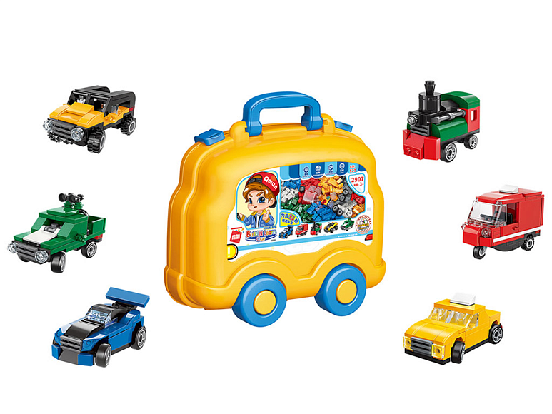 Опис Конструктор Qman 2907 транспорт, 521дет., валіза на колесах, 33-28-12см.