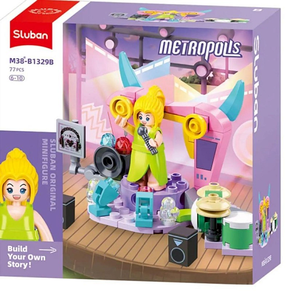 Опис Конструктор SLUBAN M38-B1329B рожева серія, сцена, фігурка, 77 дет., кор., 12-12-6 см.