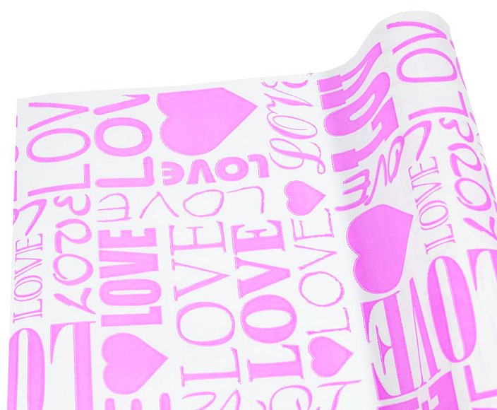 Опис Крафт папір "LOVE " блідо-рожевий шрифт на білому 0,7х8м 70гр.