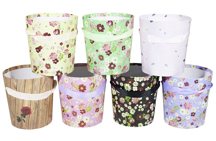 Опис Кругла подарункова коробка 15х14,5х14 "Квіти" для квітів мікс забарвлень