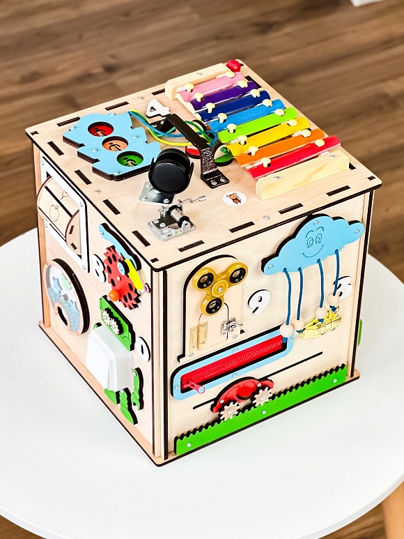 Дерев'яна іграшка Центр розвиваючий MD 0821 куб,лабиринт на дроті,сортер,фігури,ксилофон,годинник,шн