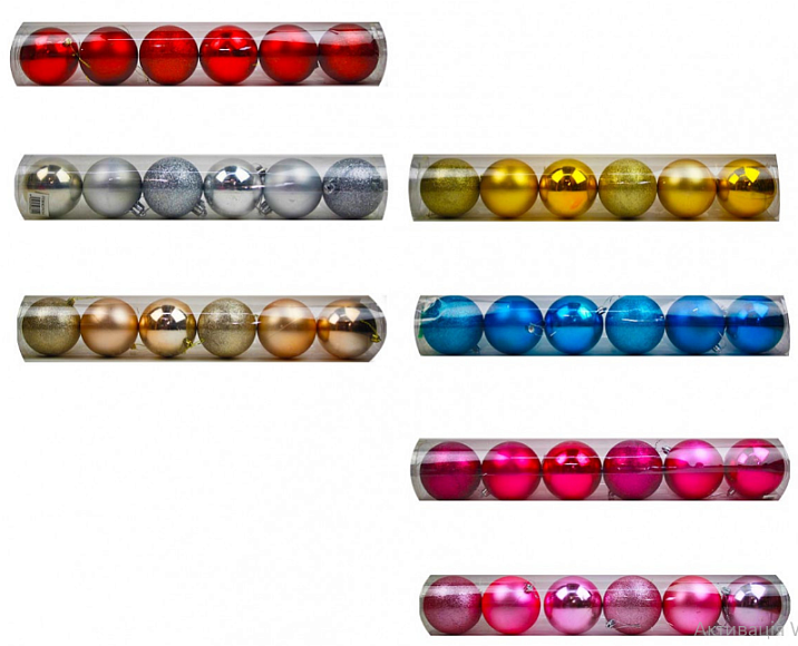 Опис Кулі новорічні №PVC6-10 пл. 6шт 3види у довжин. пвс трубі 7кол 10см (36)