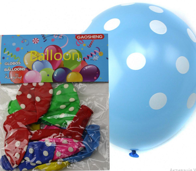 Опис Кульки №12В-3 гум. з мал. всі сторони 2,8гр 12д з мал.горошок 10шт в кл. (720)