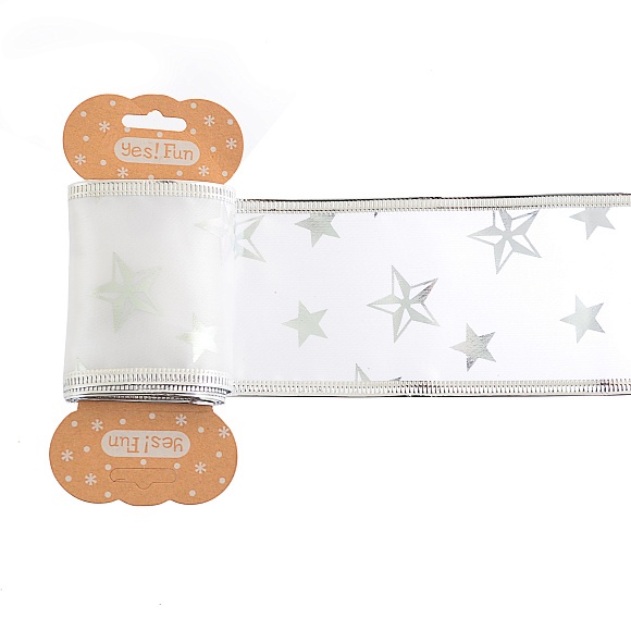 Лента декоративная 6 см * 2 м, белая с серебряной звездой
