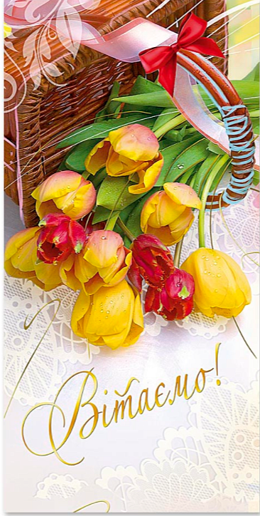 Опис Листівка подвійна Е евроформат з тисненням Е-3967 "Вітаємо!"